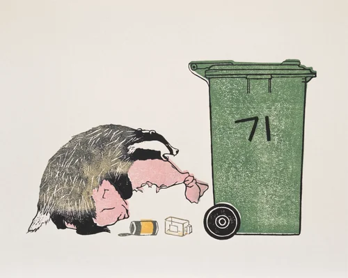 This badger was a little late to the mating party, so he settled for a recycling bag.